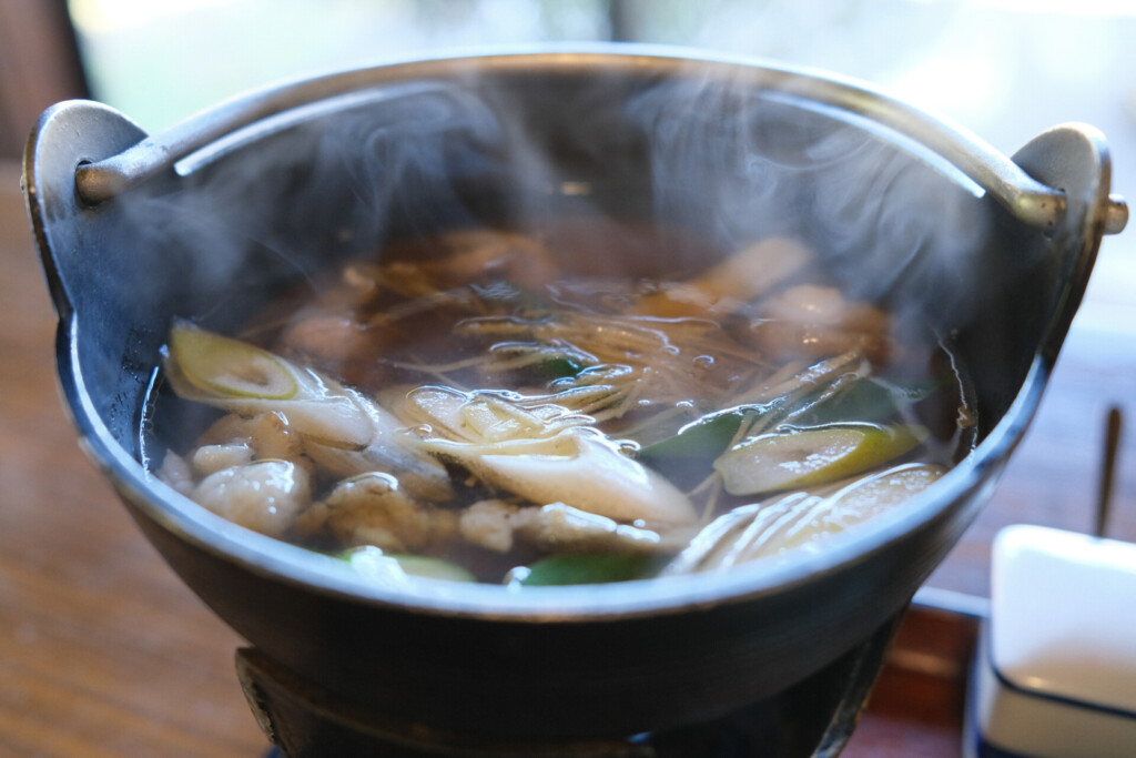 ざるそばと別で合鴨鍋が提供されて、それぞれ別に食べるもよし、混ぜるもよしだった。